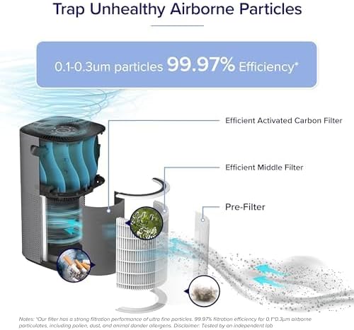 Levoit Core 600 オリジナル交換フィルターを使用すれば、最大 635 平方フィートの部屋の空気を清潔に保つことができます。3 段階のろ過により、空気中のさまざまな汚染物質を捕捉し、不快な臭いを中和します。